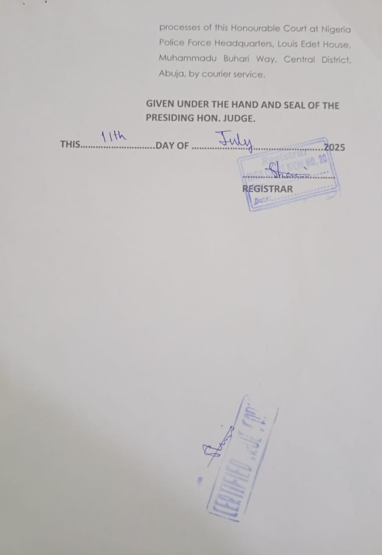 The court further granted an order for substituted service of the court processes on several respondents, including the Inspector General of Police, through courier to their respective offices in Abuja.