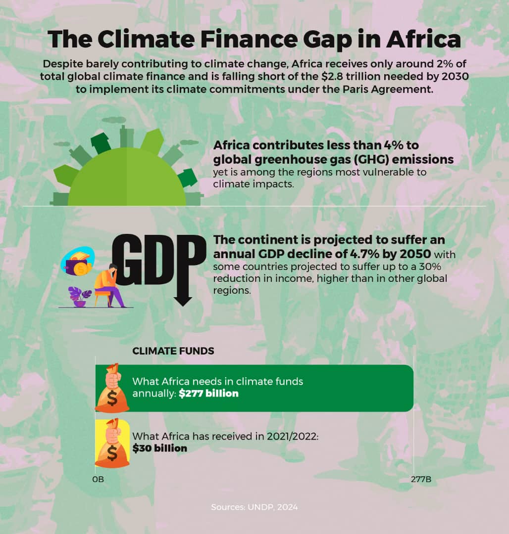 While Africa needs $2.8 trillion by 2030 to meet its climate commitments under the Paris Agreement, only 19% of climate funding received is gender-sensitive, and barely 2% globally is truly targeted toward women.